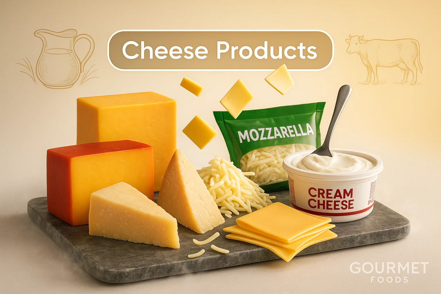Hand-picked wheels, blocks & wedges—parmesan, gouda, cheddar, mozzarella. Consistent specs, HORECA packs, reliable availability.