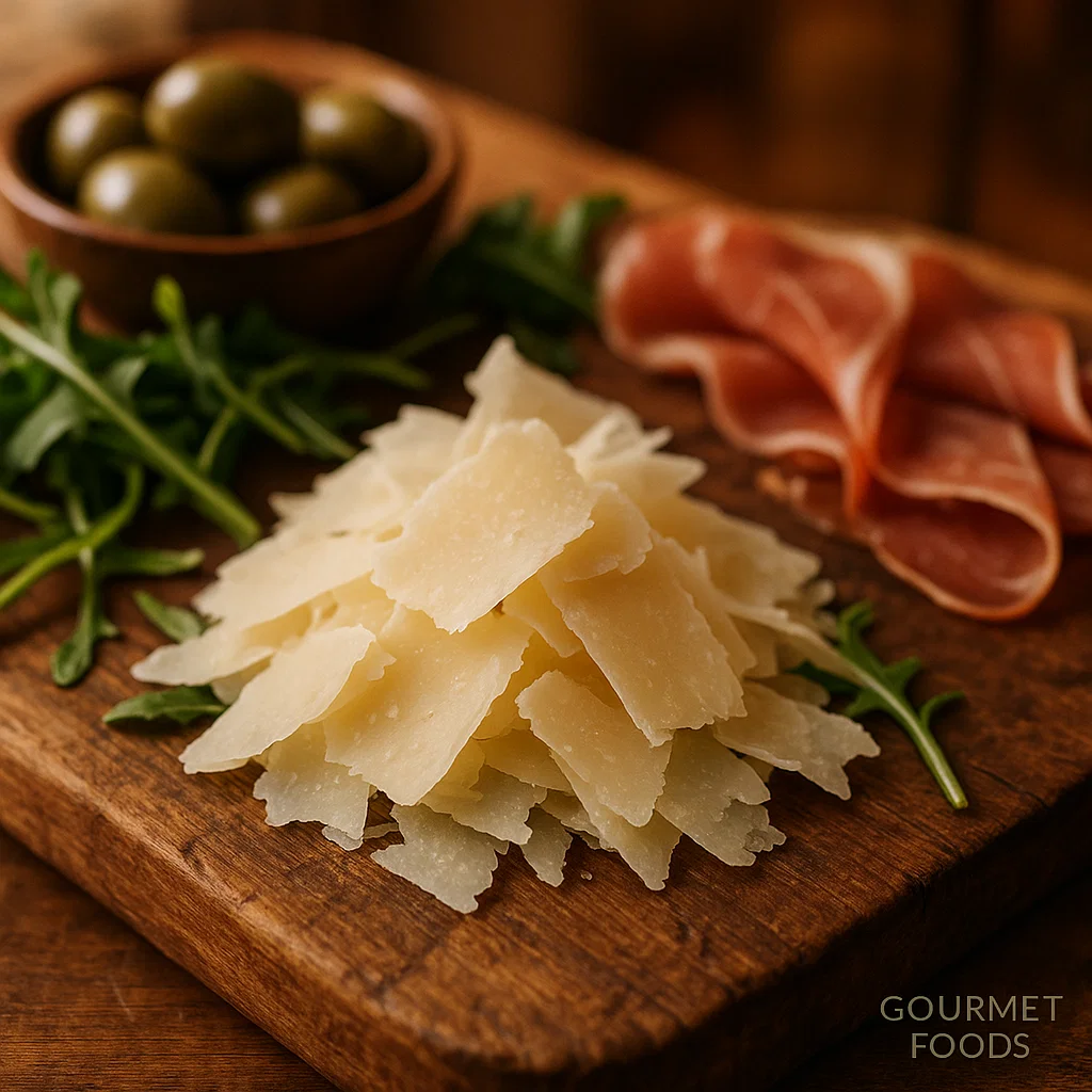 | Moisture & melt | Low-moisture, granular body; browns nicely; best used grated/shaved for aroma release. |