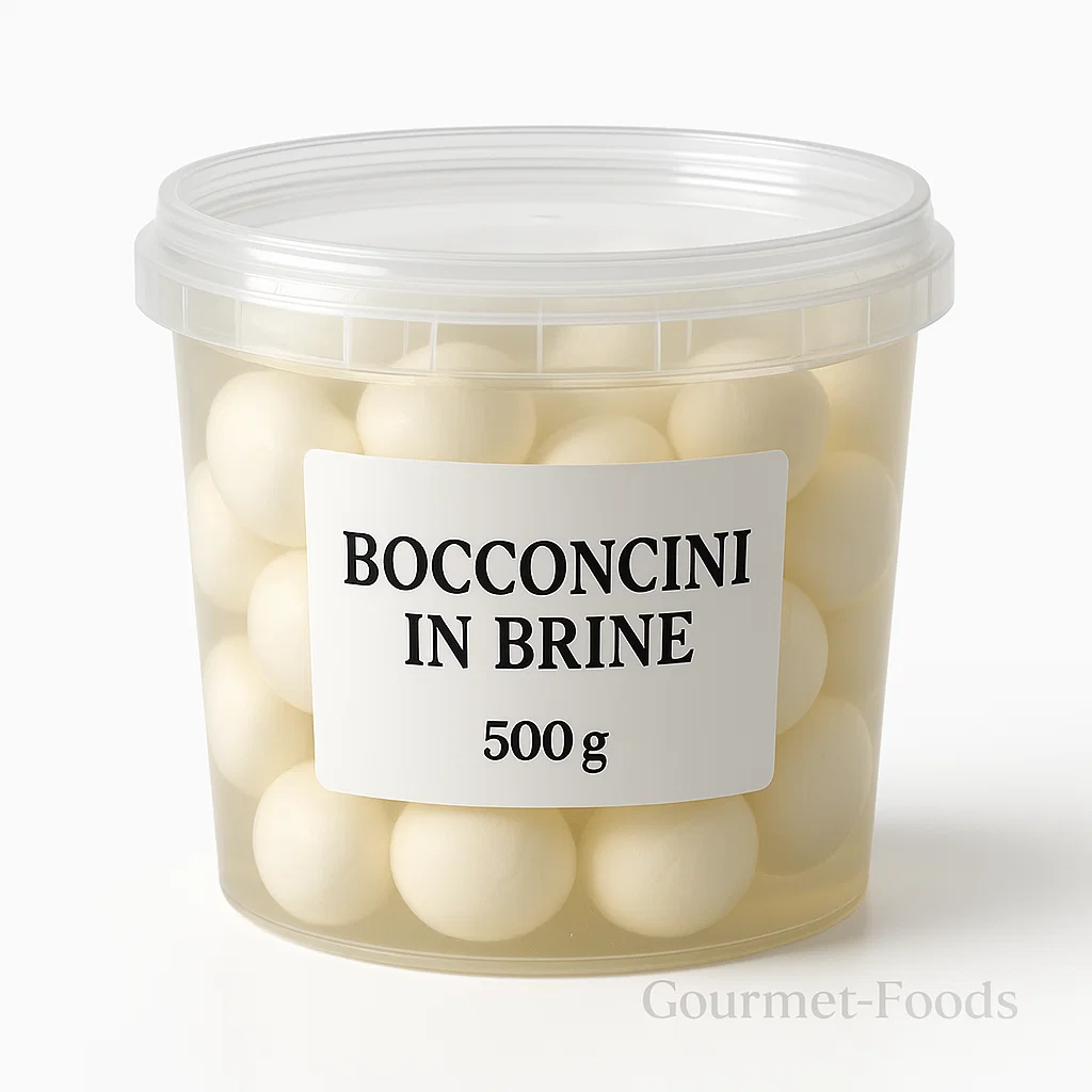 Bocconcini (small balls; typically 20–30 g each; count varies)Mild, milky, lightly salted; soft, elastic bite; gentle melt