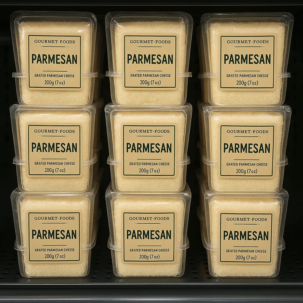 Authentic Italian Parmesan in convenient 200 g vacuum-sealed packs, delivering the same nutty, savory, umami character as full wheels—now sized for home chefs, delis and gourmet stores. Ready to grate, shave or cube straight from pack; easy to stock and portion for everyday cooking.